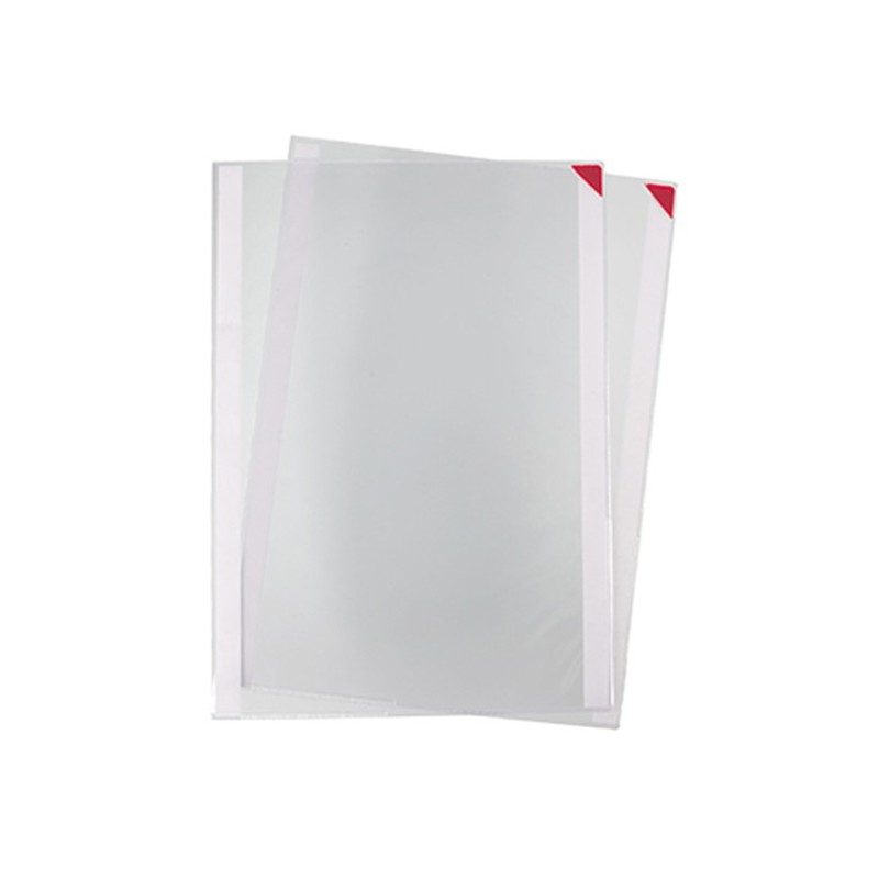 Robuste cartelline a L in PVC con retro adesivo, apertura a L e chiusura tramite magnete angolare rosso. Confezione da 5 pezzi, capaictà 10 fogli. Removibile e riutilizzabile. Dimensione: F.to A4 23,2x32,2cm. Colore rosso.