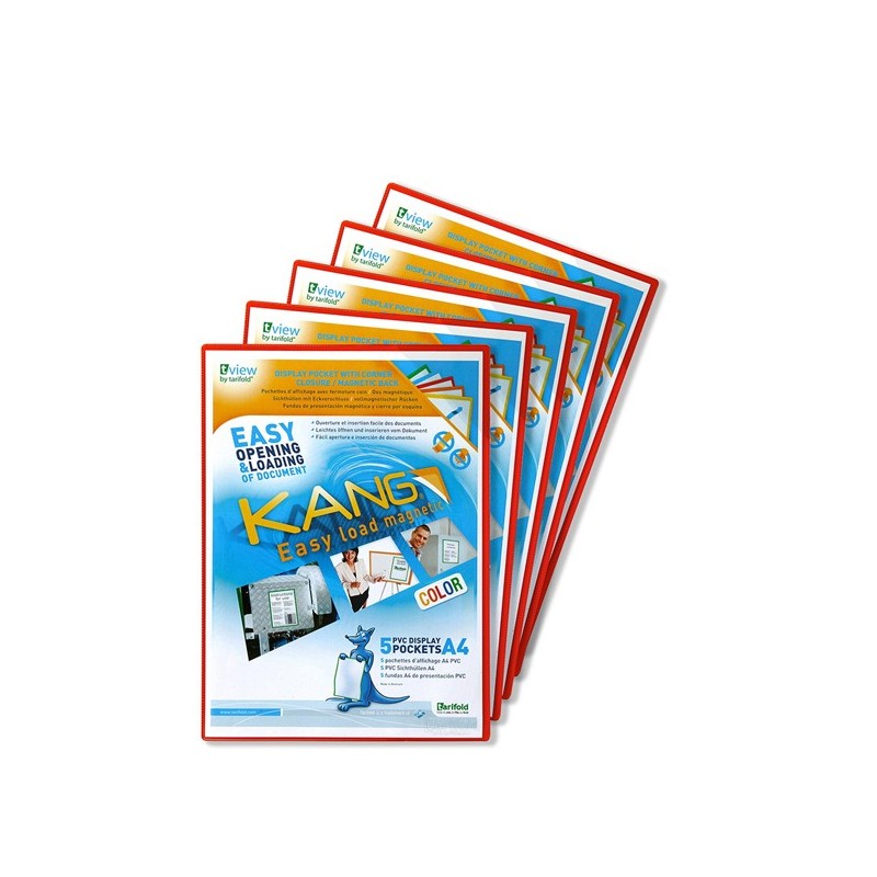 Cartelline a L in PVC antirflesso, retro magnetico, chiusura tramite flap angolare. Dimensione: F.to A4 21,8x30,5cm. Colore: rosso.