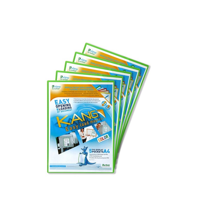 Cartelline a L in PVC antirflesso, retro magnetico, chiusura tramite flap angolare. Dimensione: F.to A4 21,8x30,5cm. Colore: verde.