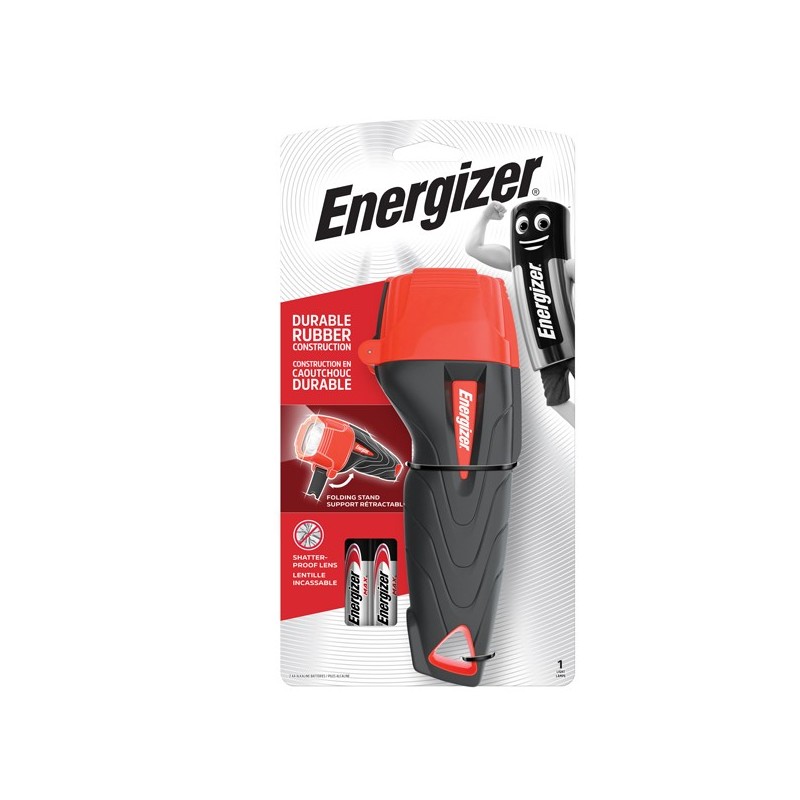 Torcia dotata della luminosa tecnologia LED e di una durevole struttura ergonomica. Include un'impugnatura testurizzata in gomma antiscivolo per maggiore ergonomia e durata. Munita di comodo supporto incorporato, consente l'utilizzo a mani libere quando necessario. Il cinturino la rende facile da fissare e il robusto interruttore a pulsante è progettato per durare nel tempo. La soluzione di illuminazione per il fai-da-te definitiva, con prestazioni e affidabilità eccellenti per tutti i tipi di applicazioni. Incluse 2 batterie AA