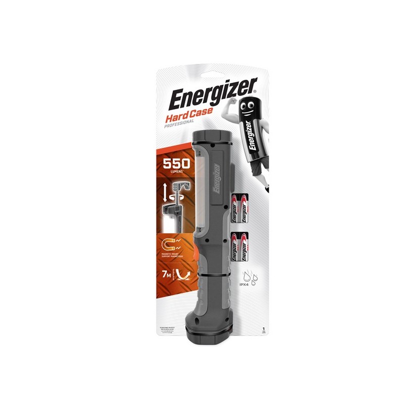 lavoro estremamente resistente alle cadute. La tecnologia LED ad alta potenza e le ottiche avanzate creano una luce intensa e uniforme, ideale per una vasta gamma di applicazioni. La torcia da lavoro può essere utilizzata a mani libere in tre modalità: mediante il gancio superiore retrattile, con i potenti magneti laterali e tramite l'ampia base che permette il posizionamento verticale.
