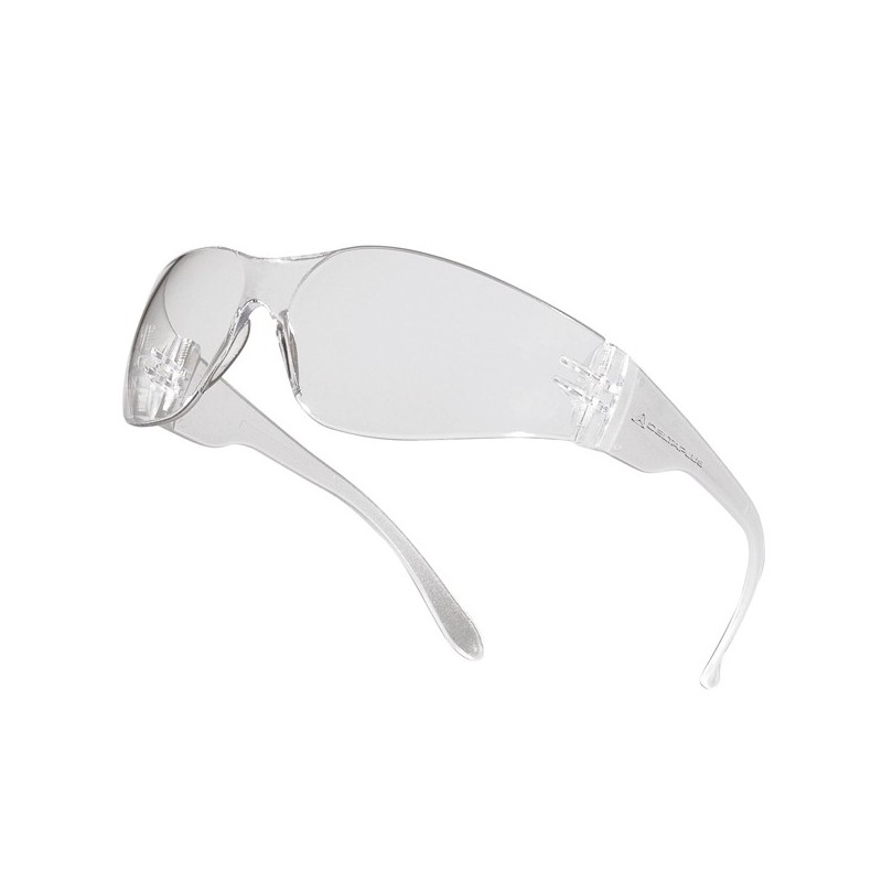 Occhiali policarbonato monoblocco. Stanghette con terminali appiattiti flessibili. Nasello policarbonato integrato. Di facile impiego con elmetto da cantiere e cuffie anti-rumore. Protezioni laterali. Categoria DPI: 2. Certificazione CE. Conformità alle norme EN166:2001 e EN170:2002.