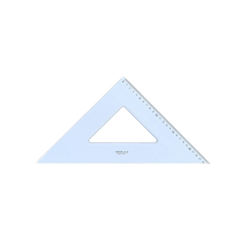 Squadra in materia plastica termoresistente di grande trasparenza e durezza superficiale, colore fume' ottico. Graduazione incisa. In busta self-service.