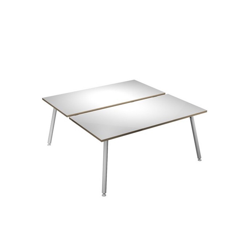 Linea di arredo operativo dal design innovativo e dinamico caratterizzata dalle gambe in metallo cilindriche inclinate delle scrivanie e dei tavoli rotondi. Robusti piani in melaminico sp. 22 mm con bordo antishock resistente agli urti in ABS 3 mm. Gambe in metallo verniciato bianco (diam. 50 mm) complete di piedini livellabili in altezza.