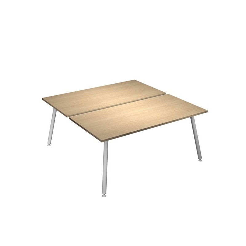 Linea di arredo operativo dal design innovativo e dinamico caratterizzata dalle gambe in metallo cilindriche inclinate delle scrivanie e dei tavoli rotondi. Robusti piani in melaminico sp. 22 mm con bordo antishock resistente agli urti in ABS 3 mm. Gambe in metallo verniciato bianco (diam. 50 mm) complete di piedini livellabili in altezza. Materiale bilaminato nobilitato melaminico spessore 22 mm conforme norme UNI e EN classe E1. Scrivanie con piani antigraffio e antiriflesso, stabili e robuste grazie alla struttura rafforzata da quattro travi in metallo di collegamento fra le gambe.