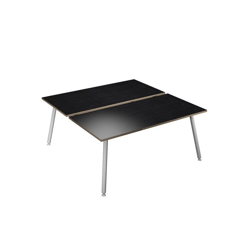 Materiale bilaminato nobilitato melaminico spessore 22 mm conforme norme UNI e EN classe E1. Scrivanie con piani antigraffio e antiriflesso, stabili e robuste grazie alla struttura rafforzata da quattro travi in metallo di collegamento fra le gambe.