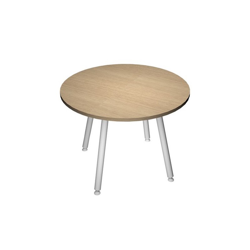 Materiale bilaminato nobilitato melaminico spessore 22 mm conforme norme UNI e EN classe E1. Tavoli rotondi di dimensioni contenute ideali per garantire un pratico e veloce appoggio per riunioni.