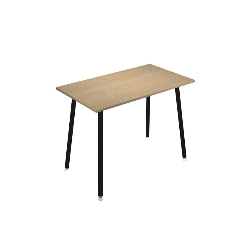 Linea di arredo operativo dal design innovativo e dinamico caratterizzata dalle gambe in metallo cilindriche inclinate delle scrivanie e dei tavoli rotondi. Robusti piani in melaminico sp. 22 mm con bordo antishock resistente agli urti in ABS 3 mm. Gambe in metallo verniciato nero (diam. 50 mm) complete di piedini livellabili in altezza.