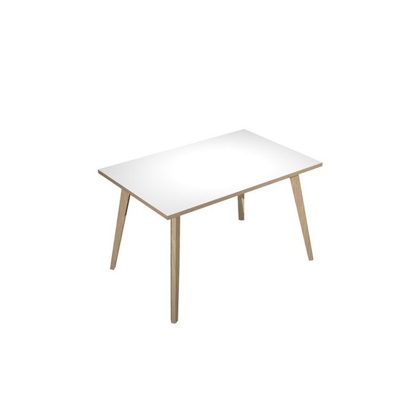 Linea di arredo operativo dal design confortevole ed essenziale caratterizzata dalle preziose gambe in LEGNO MASSELLO inclinate delle scrivanie e dei tavoli rotondi. Robusti piani in melaminico sp. 22 mm con bordo antishock resistente agli urti in ABS 2mm. Gambe in legno massello complete di piedini livellabili in altezza. Piani In materiale bilaminato nobilitato melaminico spessore 22 mm conforme norme UNI e EN classe E1. Scrivanie stabili e robuste grazie alla struttura rafforzata da quattro travi in metallo di collegamento fra le 4 gambe in legno massello Ø50mm.