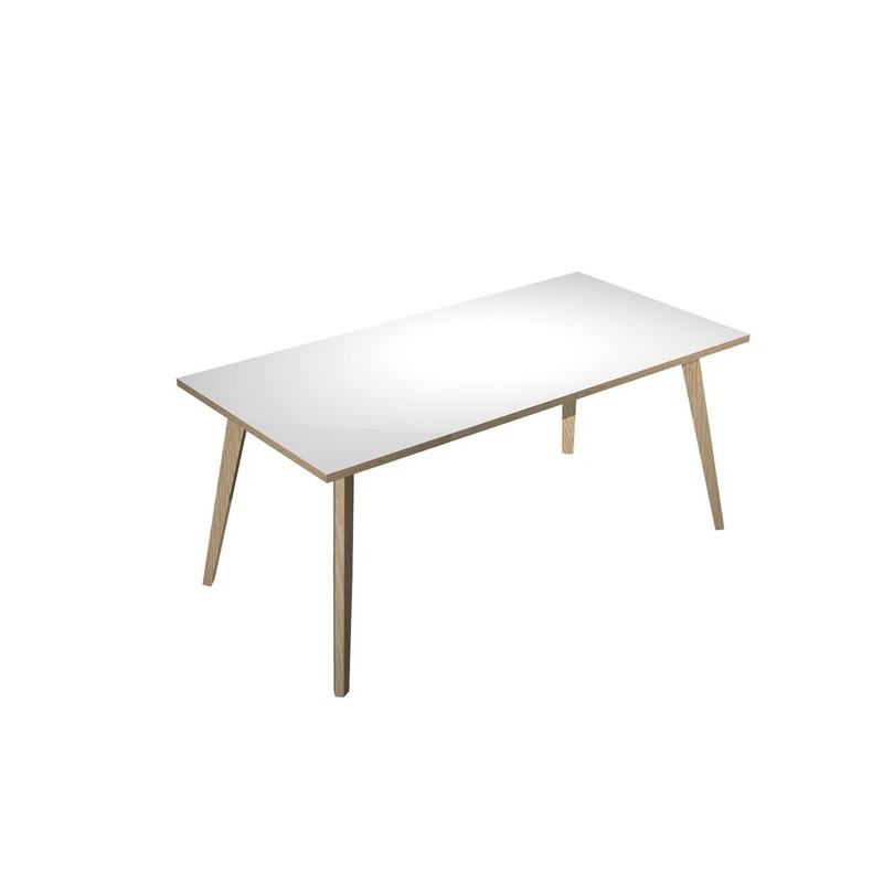 Linea di arredo operativo dal design confortevole ed essenziale caratterizzata dalle preziose gambe in LEGNO MASSELLO inclinate delle scrivanie e dei tavoli rotondi. Robusti piani in melaminico sp. 22 mm con bordo antishock resistente agli urti in ABS 2mm. Gambe in legno massello complete di piedini livellabili in altezza. Piani In materiale bilaminato nobilitato melaminico spessore 22 mm conforme norme UNI e EN classe E1. Scrivanie stabili e robuste grazie alla struttura rafforzata da quattro travi in metallo di collegamento fra le 4 gambe in legno massello Ø50mm.