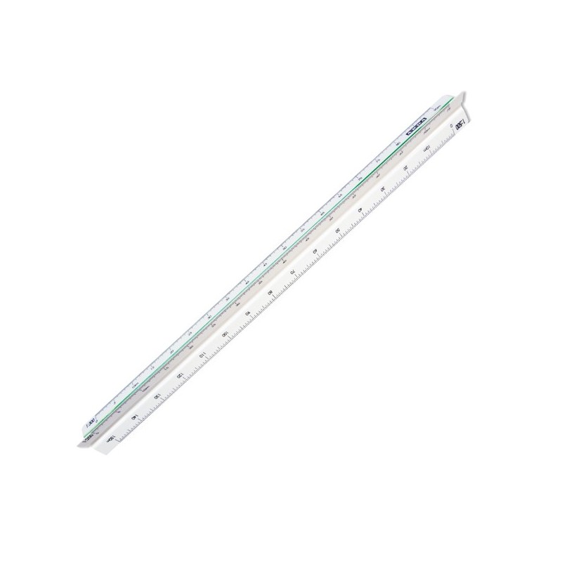 Scalimetroin plexiglass. Sezione triangolare con canali colorati. Astuccio singolo. Scale 1:500-1000-1250-1500-2000-2500