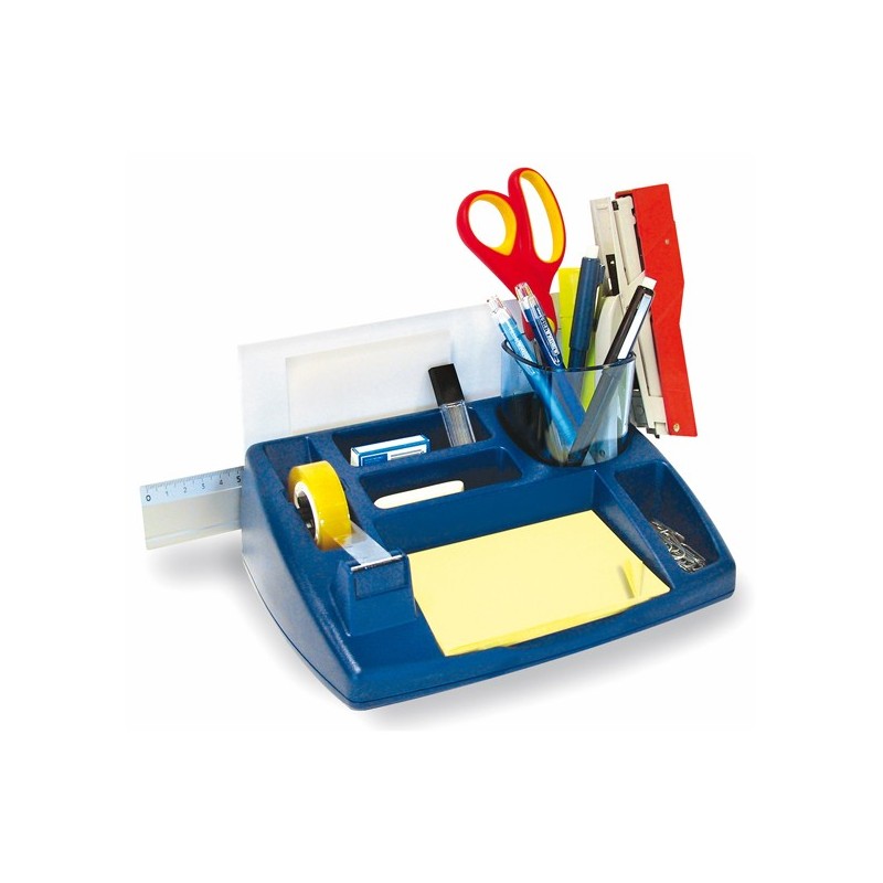 Desk Organizer Oliver struttura in polistirolo antiurto, atossico. Il portapenne può essere estratto dalla sua sede ricavando così un ulteriore vano oggetti. Porta nastro-adesivo per misura standard 19x33 mm.