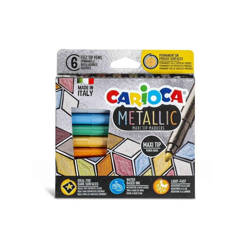 Pennarelli metallici punta maxi diam. 6mm. Ideali per superfici scure, colori permanenti su superfici porose e rimovibile su quelle lisce. Inchiostro a base d'acqua e punta bloccata. Perfetti per personalizzare oggetti come borracce e occhiali.