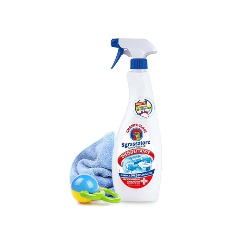 Nuovo Chante Clair disinfettante dalla formulazione superefficace anche sullo sporco vegetale incrostato. La migliore formula di sempre! Nuovo trigger upside down che funziona sottosopra consentendo di arrivare negli angoli più difficili e nascosti e di utilizzare il prodotto fino all’ultima goccia. Lo Sgrassatore Universale Disinfettante Chante Clair unisce un'efficace azione sgrassante ad una completa azione disinfettante di tutte le superfici trattate rimuovendo il 99,99% dei batteri. Superpotente contro lo sporco più ostinato, adatto in cucina sui fornelli e nel frigorifero, in bagno sui sanitari e piastrelle e anche come pretrattante sui capi d'abbigliamento. • Profumo neutro • Presidio Medico Chirurgico • Flacone spray da 600 ml