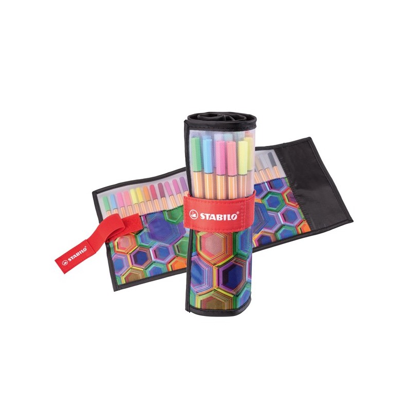 Rotolo in nylon contenente 25 fineliner Point 88 in colori assortiti. Scomparto interno con cerniera.