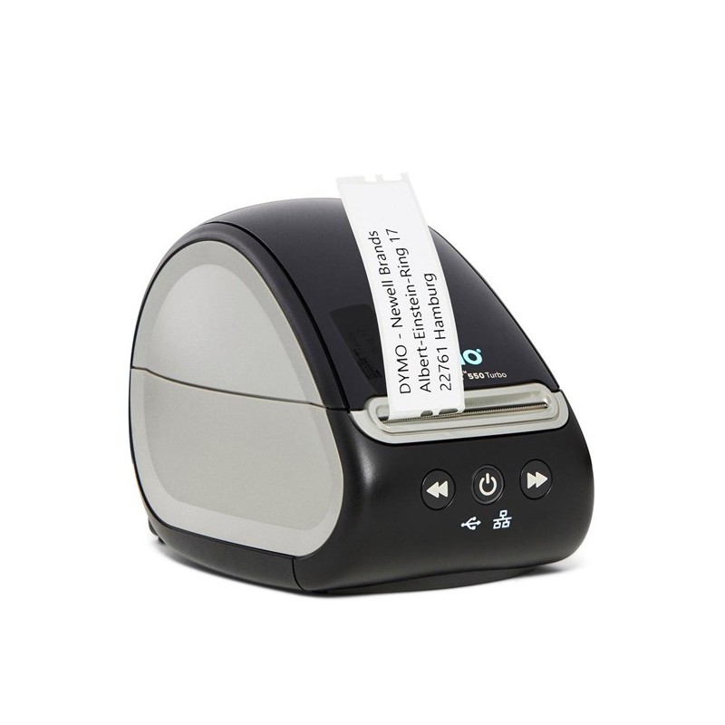 DYMO® LabelWriter™ 550 Turbo offre una stampa di etichette accurata e ad alta velocità con connettività di rete LAN (si collega alla rete tramite cavo ethernet - stampa da qualsiasi computer della rete). Con la nuova ed esclusiva tecnologia di riconoscimento e visualizzazione del tipo di etichetta, è possibile conoscere sempre a colpo d'occhio la dimensione, il tipo e il numero di etichette rimanenti. La tecnologia termica diretta elimina la necessità di inchiostri o toner costosi e il software intelligente DYMO® Connect for Desktop si collega al PC o Mac® per una gamma di possibilità di design eleganti. Tutto questo oltre ad una stampa fino al 45% più veloce rispetto al modello base LabelWriter™ 550: stampa quantità precise di etichette senza dover combattere con le etichette in fogli. L'unità singola include: Stampante per etichette LabelWriter™ 550 Turbo, Rotolo Starter di etichette di indirizzo, Adattatore, Cavo di alimentazione, Cavo USB, Guida rapida.