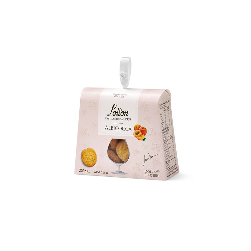 Burroso frollino con la vellutata dolcezza dell'albicocca che impreziosisce i già nobili ingredienti di base, in astuccio 200g Loison.