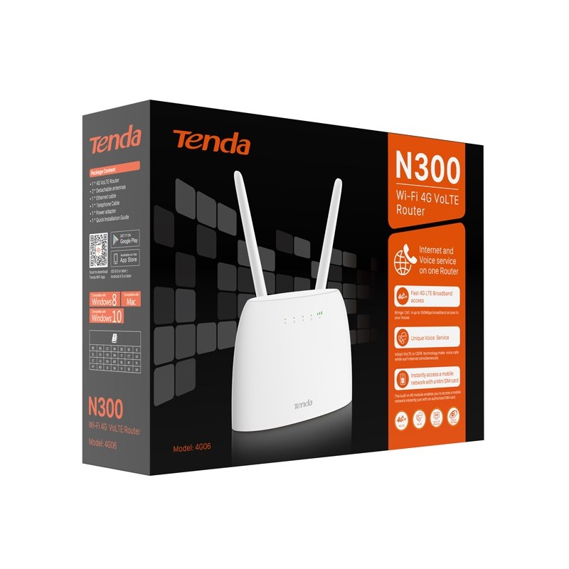 Il 4G06 è il router N300 Wi-Fi 4G VoLTE di casa Tenda che permette di utilizzare la connessione Internet ad alta velocità semplicemente inserendo una scheda SIM. Il router è dotato di una potente CPU funzionante a 880 MHz prodotta con processo a 28nm e supporta la tecnologia VoLTE; quindi collegando un telefono digitale fisso o wireless è possibile effettuare chiamate anche mentre si sta navigando (verificare che il proprio operatore mobile supporti la funzionalità VoLTE). Grazie alle sue caratteristiche, il 4G06 riesce a soddisfare le esigenze di tutti. Il suo design unico ed elegante lo rende anche un oggetto da arredamento per la tua casa o ufficio.