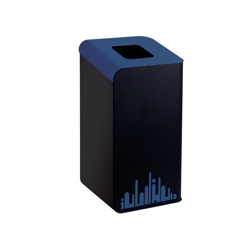 Gettacarte in metallo ideali per creare isole ecologiche perfettamente integrate con gli arredi degli ambienti interni. Struttura e profili in metallo verniciato e coperchio colorato per incentivare la raccolta differenziata. Foro superiore 16 x 20cm. Pratico sistema reggisacco integrato. Estrazione sacco tramite l'apertura dello sportello superiore. Fornito con adesivo colorato "skyline" già applicato. E’ possibile personalizzare la raccolta del contenuto con etichette pre-fustellate in vinile (disponibili sia scritte che icone). Kit ruote Ø40mm opzionale (ref. 789099). Coperchio colorato Blu. Dimensioni: L39 x P42,6 X H78cm – 14kg. Capacità: 80 litri. Made in Italy. Si consiglia di pulire la superficie con un panno morbido, imbevuto d’acqua o con un prodotto specifico non aggressivo. Non utilizzare detergenti contenenti acetone, metiletilchetone, percloroetano, toluene, tricloroetano, xilene, idrato d’ammonio, idrato di sodio.