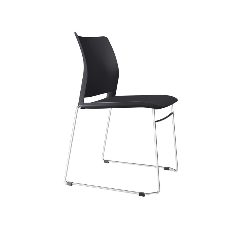 Sedia interlocutore 100% polipropilene su slitta in acciaio cromato diam. 11 mm - senza braccioli - altamente impilabile. Alt.tot: 81cm; Prof.tot: 54cm; Alt. schienale: 36cm; Largh.schienale: 48cm; Largh.sedile: 50cm; Prof.sedile: 44cm; Alt.sedile: 45cm. Certificazione: EN 16139: 2013.