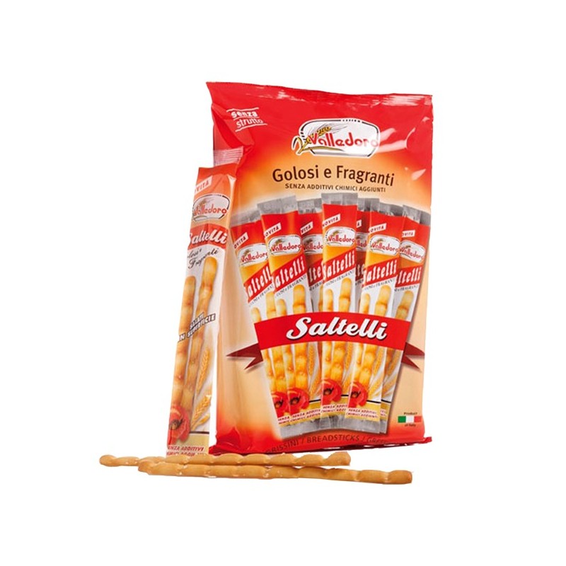 Grissini nuovi nella forma e nel gusto, con olio extravergine di oliva e salati in superficie. Accompagnano ogni pietanza in modo originale, adatti anche per aperitivi. Confezione da 240 gr (18 monoporzioni).