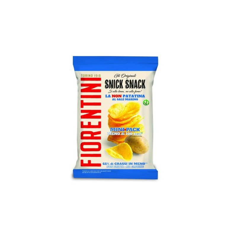 Confezione da 30 monoporzioni di Snick Snak La non patatina al sale marino monoporzione da 20gr ca. Confezione da 30 monoporzioni. Ingredienti: Fiocchi di patata 74%, farina di riso, olio di mais, sale marino 1,3%, curcuma, estratto naturale di oliva.
