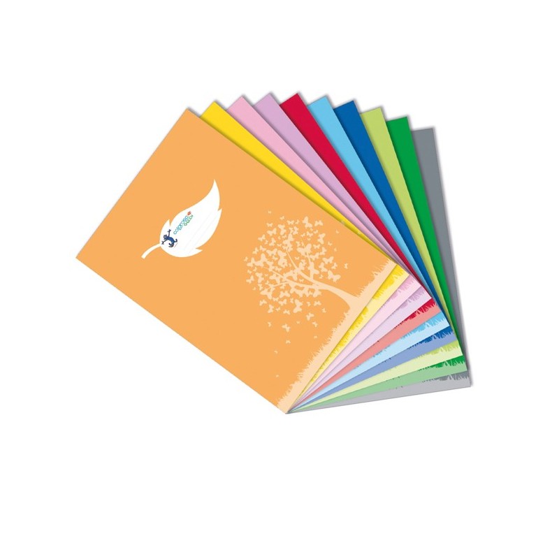Coprimaxi Colorosa Green, realizzato interamente in carta, ecologico e riciclabile al 100%. Dotato di tasche laterali e spazio per la personalizzazione sulla copertina.