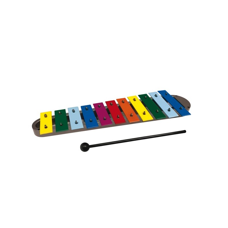 Colorato metallofono in scala DO-C/FA-F. Particolarmente indicato per affinare le abilità di riconoscimento uditivo e per l'educazione musicale.Completi di spartiti semplificati per iniziare ad imparare a suonare.
