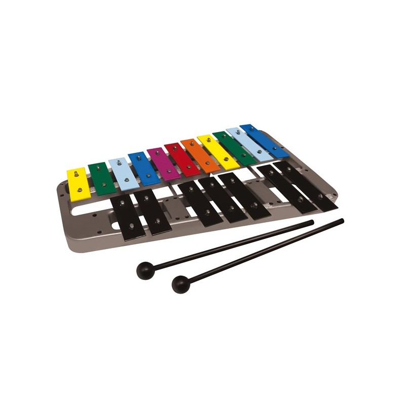 Colorato metallofono in scala DO-C/FA-F. Particolarmente indicato per affinare le abilità di riconoscimento uditivo e per l'educazione musicale.Completi di spartiti semplificati per iniziare ad imparare a suonare.