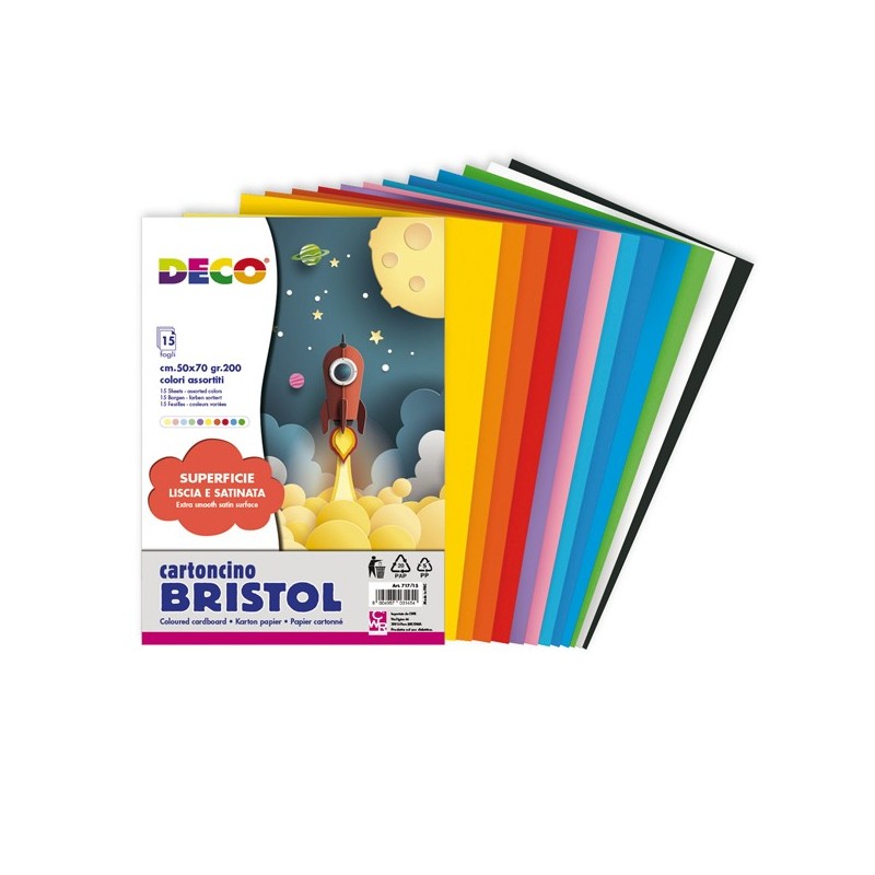 Cartoncino Bristol da 200gr - 15 fg f.to 50x70cm, colori assortiti.