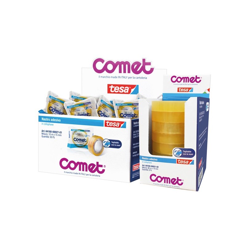 Nastro adesivo - confezionato singolarmente -15 mm x 10 m - cellophane - trasparente - Comet