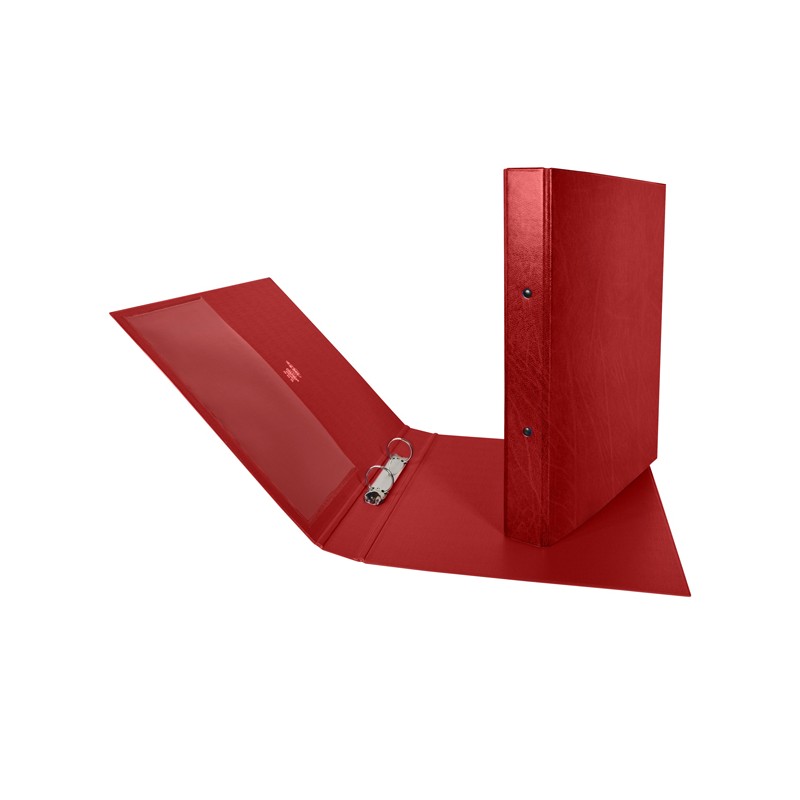 Raccoglitore in Colpan® (cartone rivestito in PVC) con meccanismo a 2 anelli tondi e tasca interna trasparente. Ideale per archiviare qualsiasi tipo di documento. Formato esterno: 265x310 mm. Formato contenuto: 220x300 mm (A4). Dorso: 30 mm. Diametro anelli: 25 mm. Colore rosso.