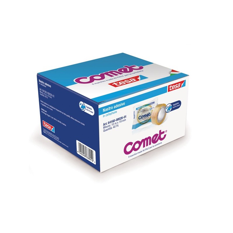 Nastro adesivo - confezionato singolarmente - 19 mm x 10 m - cellophane - trasparente - Comet