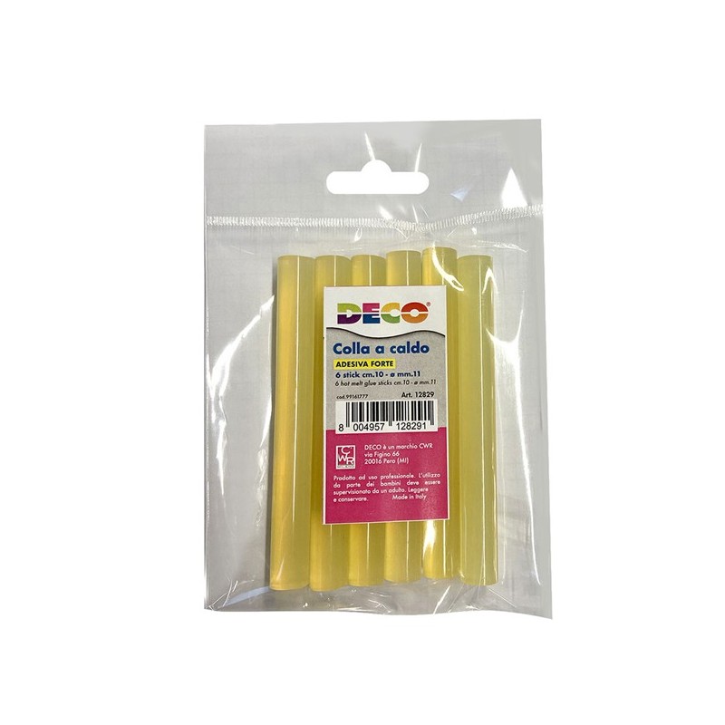 Colla stick adesivo forte. Dimensione 10cm x diam. 11mm. Adatta al utilizzo con cod. 82570 pistola per colle a caldo. Confezione da 6 stick.
