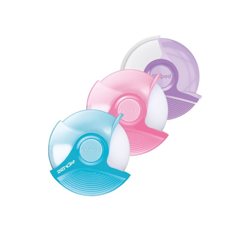 Gomma dotata di custodia rotativa che garantisce una protezione completa quando non utilizzata. Cancella in modo efficace e sostenibile. Priva di PVC e ftalati. Colori pastello assortiti.