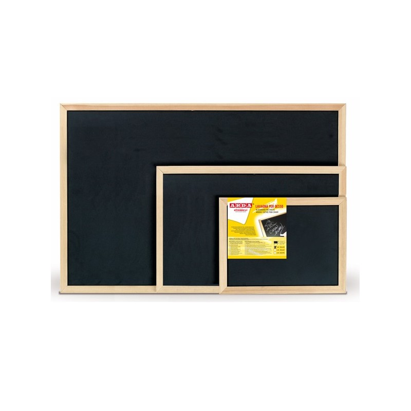 LAVAGNA CON SUPERFICIE MONOFACCIALE NERA con spssore di 3.18mm PER SCRITTURA CON GESSO. CORNICE IN LEGNO con spessore da 16mm. KIT DI FISSAGGIO AL MURO COMPRESO.