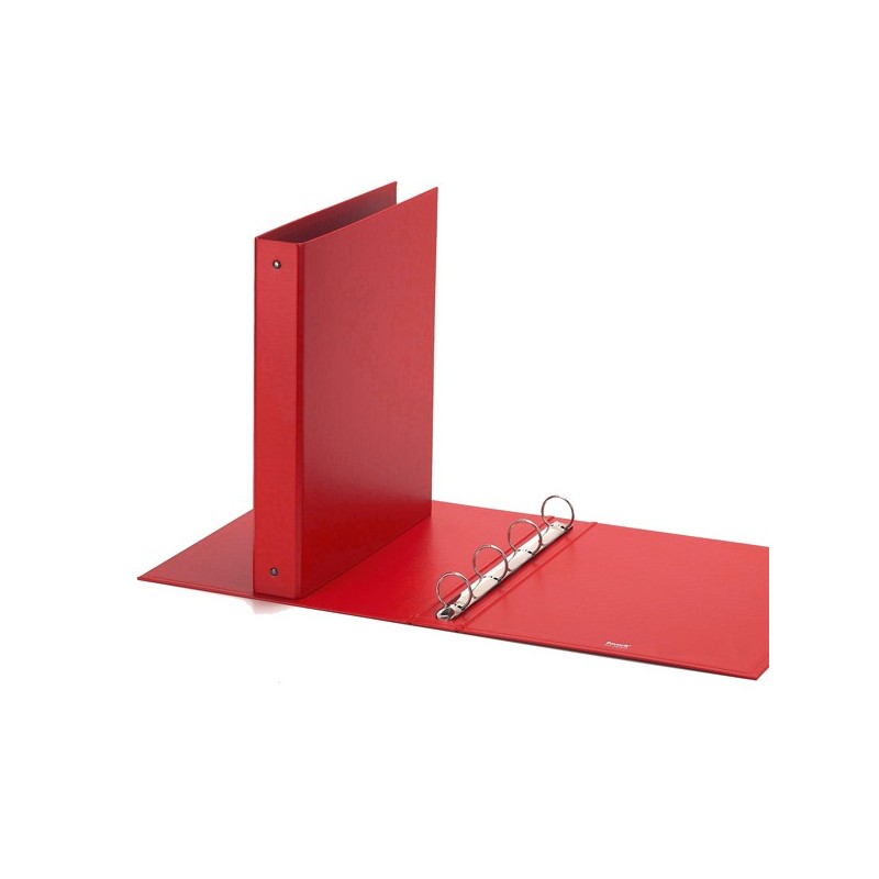 Raccoglitore realizzato in polipropilene con anima di cartone. Texture goffrata "Europa" per chi ama l'eleganza. Elevata resistenza per un uso quotidiano molto intenso a casa e in ufficio. Meccanismo a 4 anelli tondi (diametro 30 mm). Formato utile 22x30 cm. Formato esterno 27x32 cm. Colore rosso. Made in Italy.
