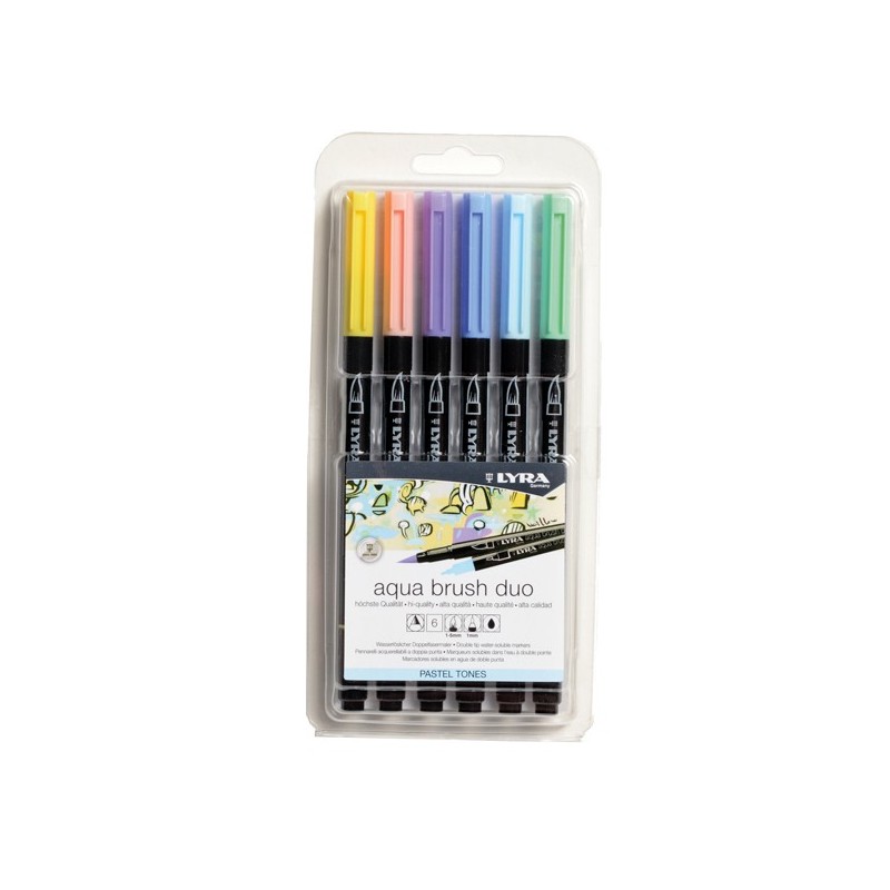 Confezione 6 pennarelli a due punte di ottima qualità. Punta fine per disegni di precisione, contorni e dettagli. La punta pennello permette invece una pennellata piatta, morbida e pulita. Colori a base acqua perfettamente acquerellabili.