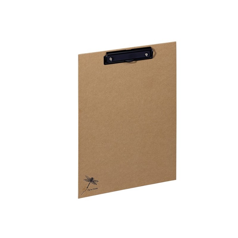 "PURE - Portablocco f.to A4, con meccanismo a molla per trattenere fogli sfusi. Realizzato in cartone ricoperto di carta kraft di alta qualità, 100% biodegradabile, riutilizzabile e riciclabile. Copertina personalizzabile. Dimensioni (LxHxP): 240x340x20mm.