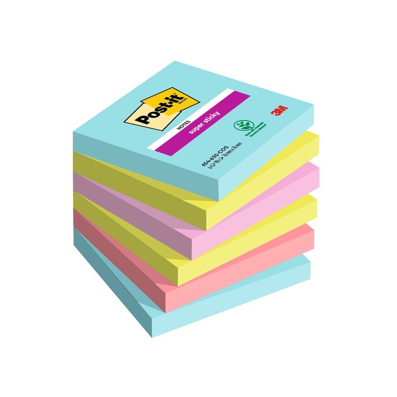 Foglietti Post-it® Super Sticky Cosmic: acqua, verde acido, rosa tropicale, rosa guava.