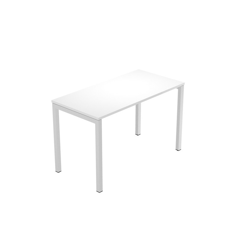Scrivania bordo ABS 2 mm. Gambe in metallo grigio alluminio 9006 a sezione quadrata 40x40 mm. Profondità 60cm ideale per lo smartworking. Piano bianco.