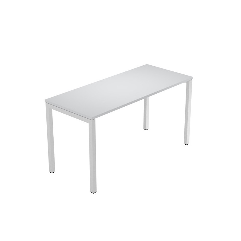 Scrivania bordo ABS 2 mm. Gambe in metallo grigio alluminio 9006 a sezione quadrata 40x40 mm. Profondità 60cm ideale per lo smartworking.