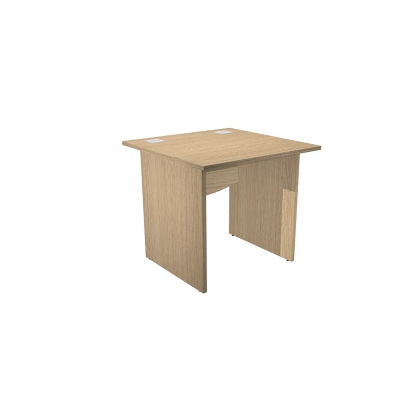 Scrivania con fianchi melaminico. Desktop completo di due anelli passacavi Bordo antiurto in ABS 2mm, piedini regolabili in altezza. Spessore 25mm.