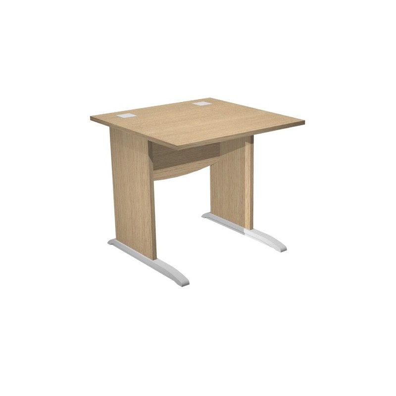 Scrivania con fianchi melaminico a L. Desktop completo di due anelli passacavi Bordo antiurto in ABS 2mm, piedini regolabili in altezza. Spessore 25mm.