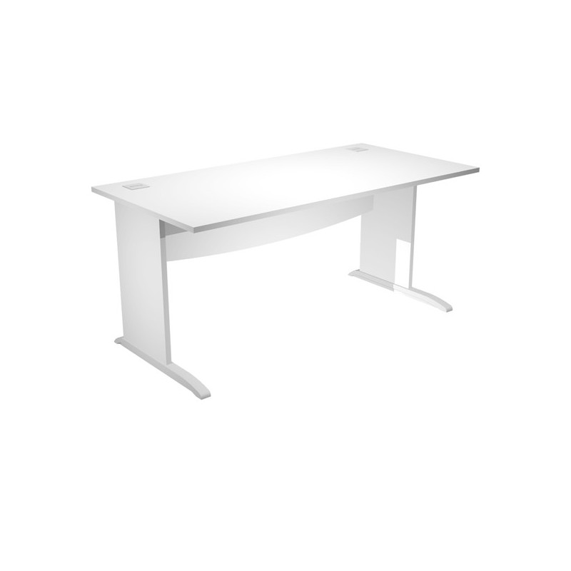 Scrivania con fianchi melaminico a L. Desktop completo di due anelli passacavi Bordo antiurto in ABS 2mm, piedini regolabili in altezza. Spessore 25mm.