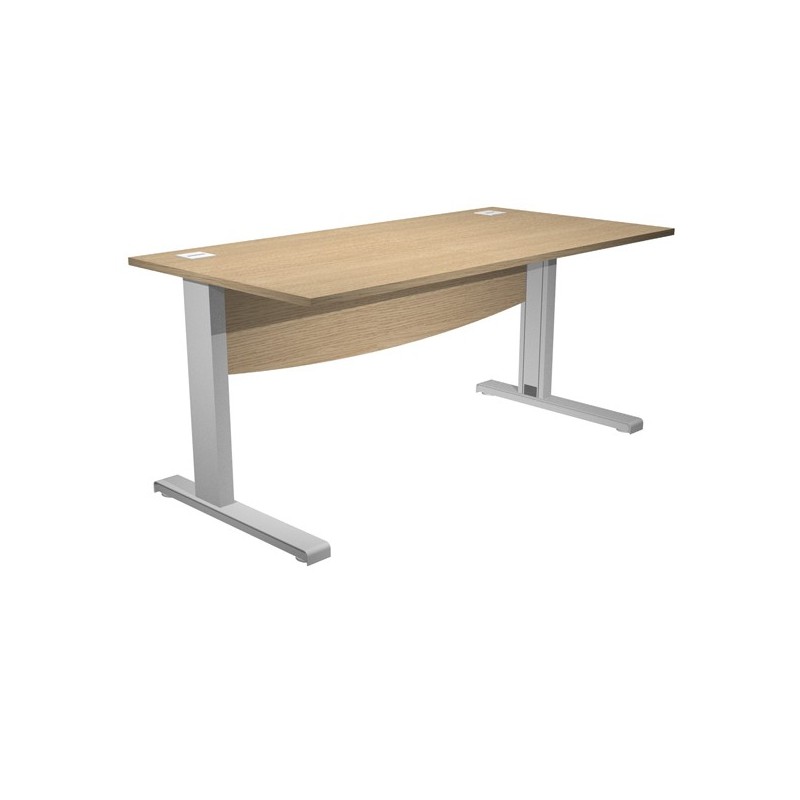 Scrivania con fianchi metallo a L. Desktop completo di due anelli passacavi. Bordo antiurto in ABS 2mm, piedini regolabili in altezza. Spessore 25mm. Controventatura strutturale in melaminico. Gambe in alluminio.