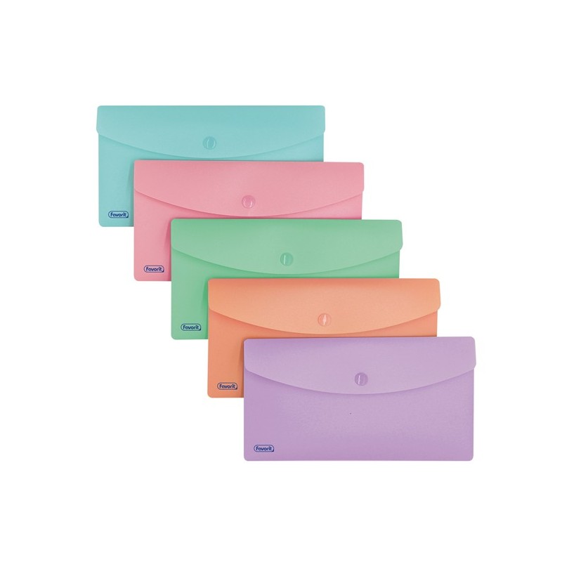 Buste con bottone - PPL - 9,9 x 21 cm - colori assortiti Pastel - Favorit - conf. 5 pezzi