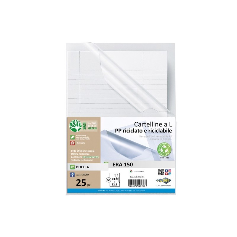 Cartellina a L Era 150 - A4 - PP riciclato - buccia - Sei rota - conf. 25 pezzi