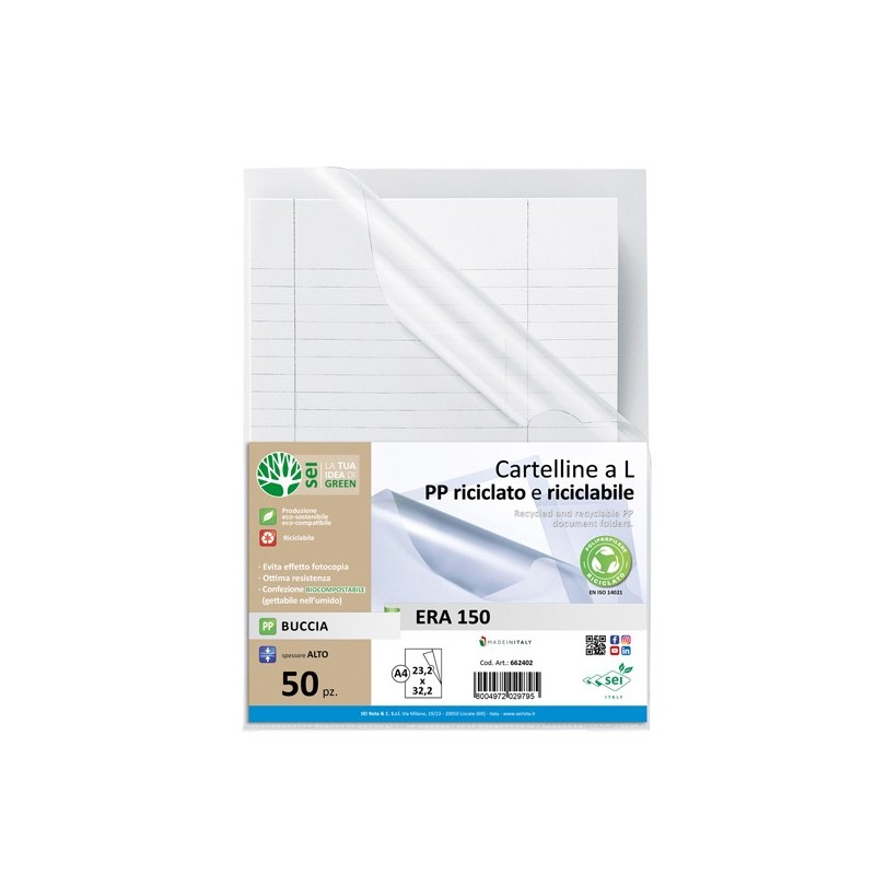 Cartellina a L Era 150 - A4 - PP riciclato - buccia - Sei rota - conf. 50 pezzi