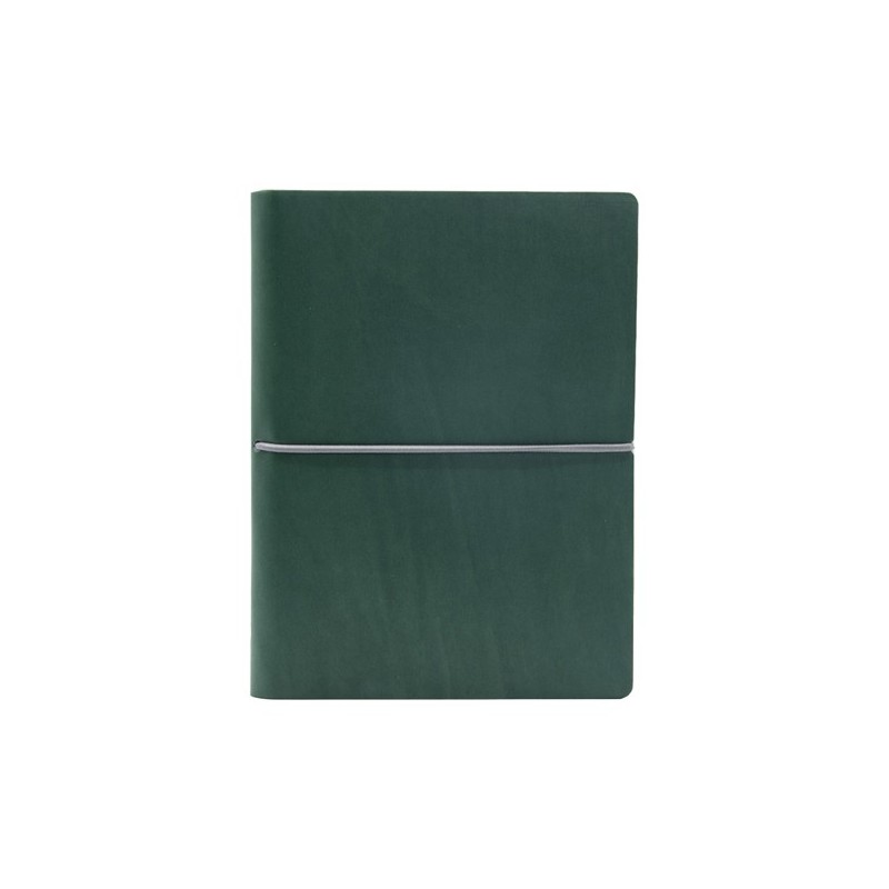 Taccuino con copertina in sintetico effetto liscio. Morbida, resistente e flessibile. Chiusura con elastico orizzontale. Carta riciclata colore avorio. Fatto a mano in Italia.